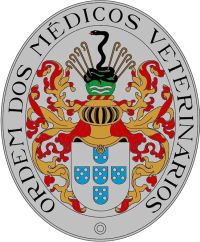 Brasão ovalado, circundado por listel ovalado, de prata, com a seguinte inscrição em letras gregas maiúsculas, de tipo Ellzevir: ORDEM DOS MÉDICOS VETERINÁRIOS.